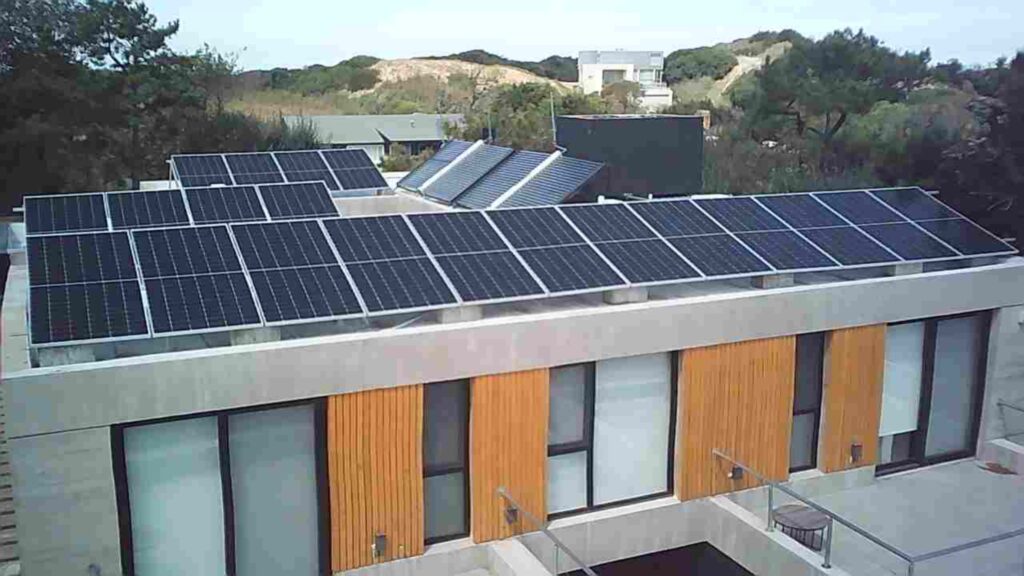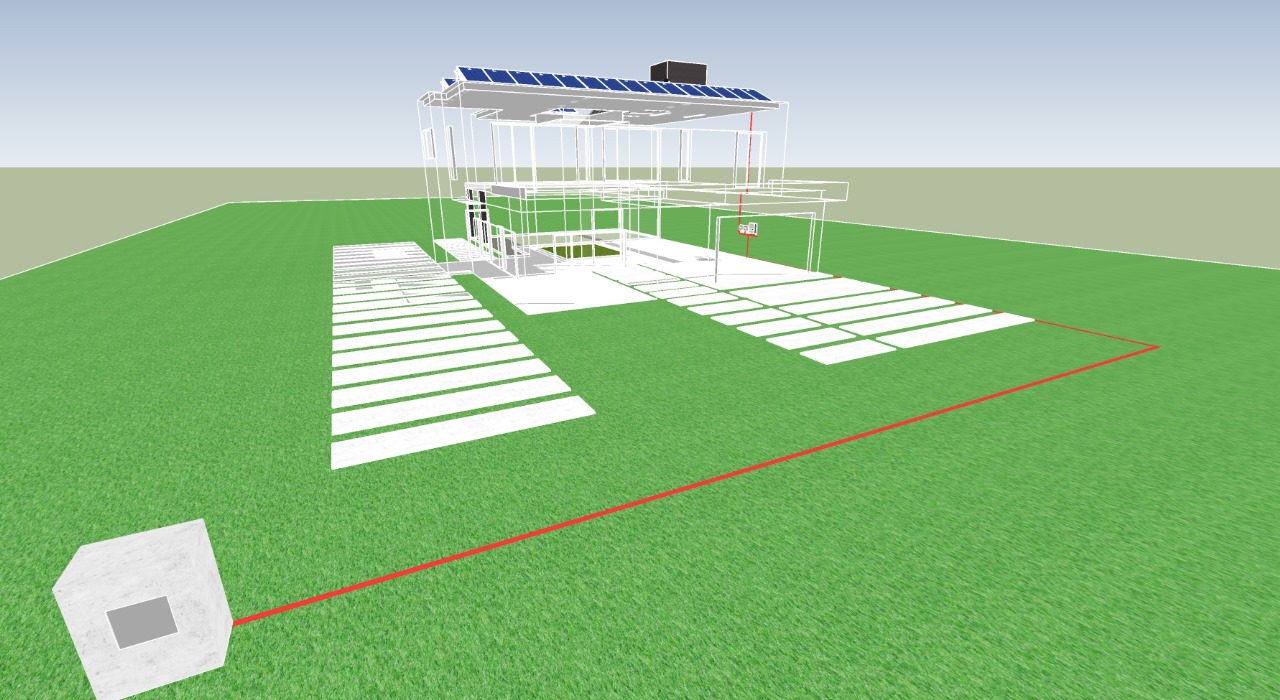 En la terraza, se ha instalado un sistema solar fotovoltaico Ongrid de 10kWp para satisfacer las necesidades eléctricas de la vivienda y, simultáneamente, permitir la inyección del excedente de energía generada a la red. Se realizó una reforma en el pilar de medición para cumplir con la normativa requerida por el ente regulador.