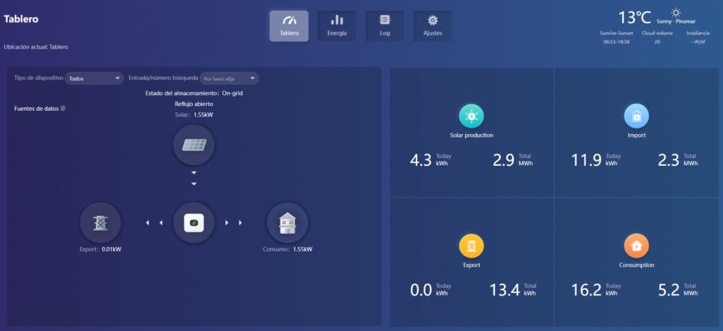 Para brindar un control eficiente, el cliente cuenta con una interfaz que le permite monitorear remotamente el equipo a través de una aplicación, accediendo así a datos de generación y consumo desde su teléfono o computadora personal.